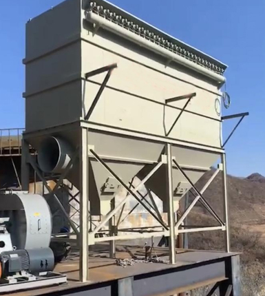 治理破碎機、篩分系統(tǒng)無濕度、粘度、常溫的粉塵一般常用脈沖除塵器,此種除塵器具有高效、低阻、維護簡單,運行可靠,投資小而運行費用低的特點,排放濃度可遠低于國家規(guī)定標準,是冶金、建材等行業(yè)倍受青睞的一種除塵設(shè)備。因而能捕集含塵濃度較高達1000g/m3N的氣體,且除塵效率高。